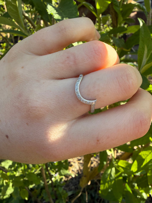 'V' Shaped Micro Grain Set Diamond Ring - 2mm