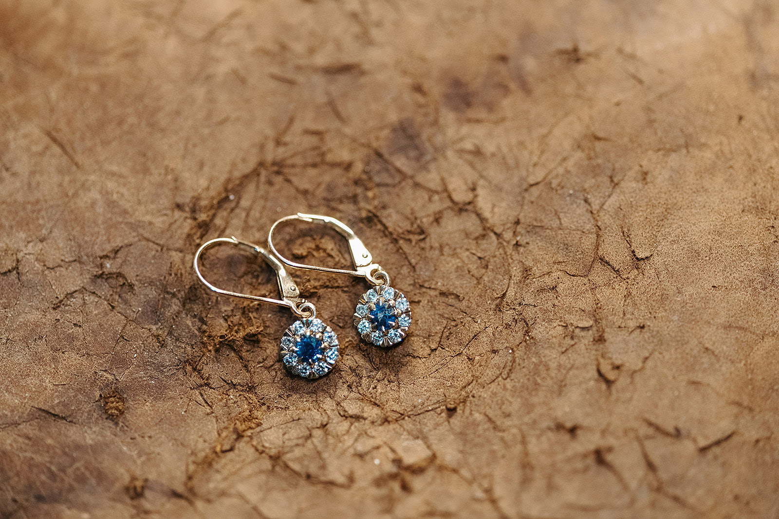 Our Floral Cluster earrings are a classic elegant design - the central round Sapphire is held in place by talon claws, with a halo of round diamonds. The earrings sit on subtle drop fittings with a safety fastening.